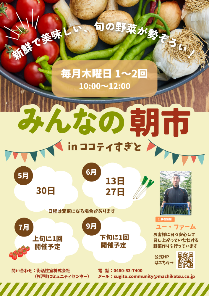 5月より「みんなの朝市 in ココティすぎと」がスタートします! |