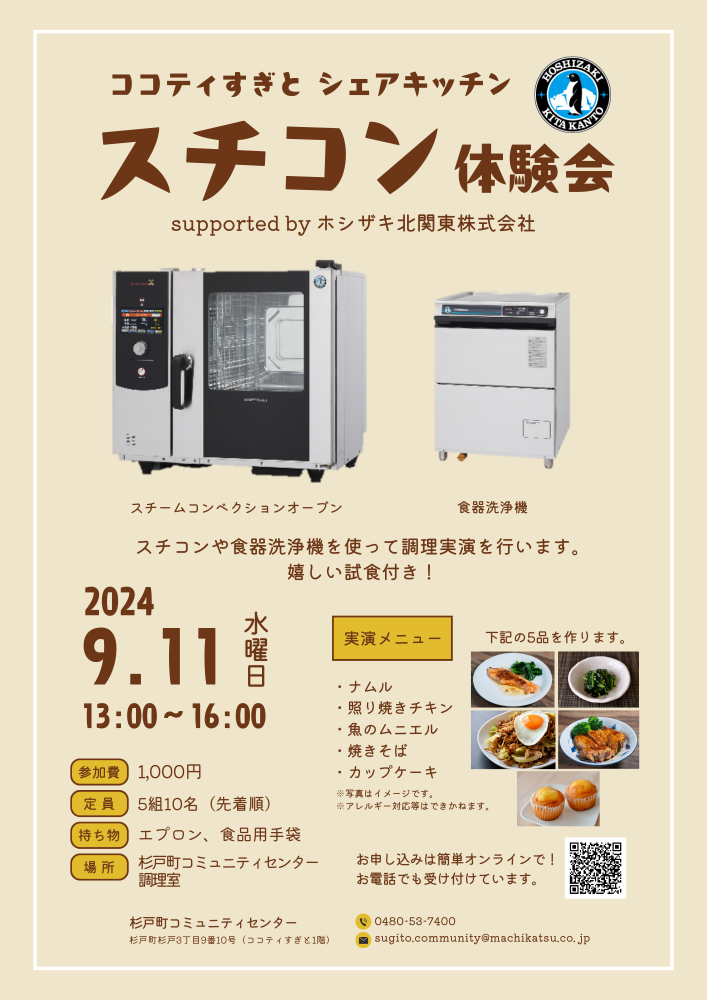 8月開催回は満員になってしまったスチコン体験会ですが、9月の開催日が決定しました〜👏  |