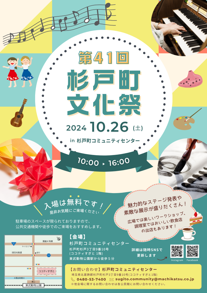 10月26日(土)に「第41回杉戸町文化祭」を開催します✨