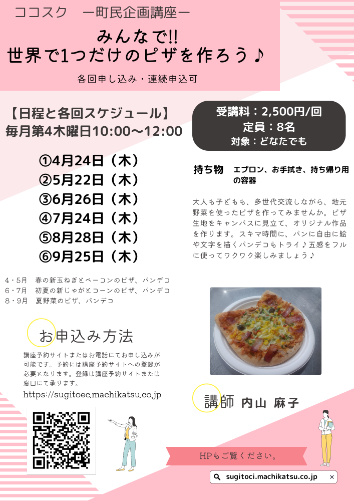 【町民企画講座】みんなで!!世界で1つだけのピザを作ろう♪(各回申込・連続申込可) |