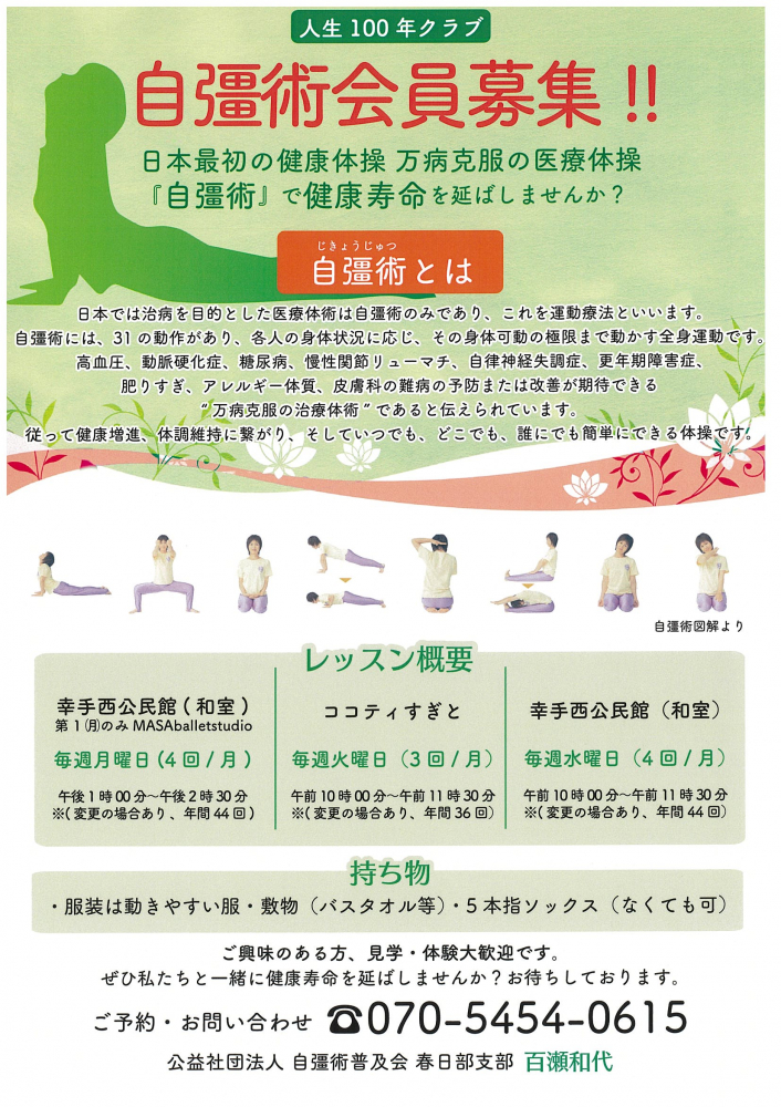 公益社団法人 自彊術普及会 春日部支部 百瀬和代 070⁻5454⁻0615