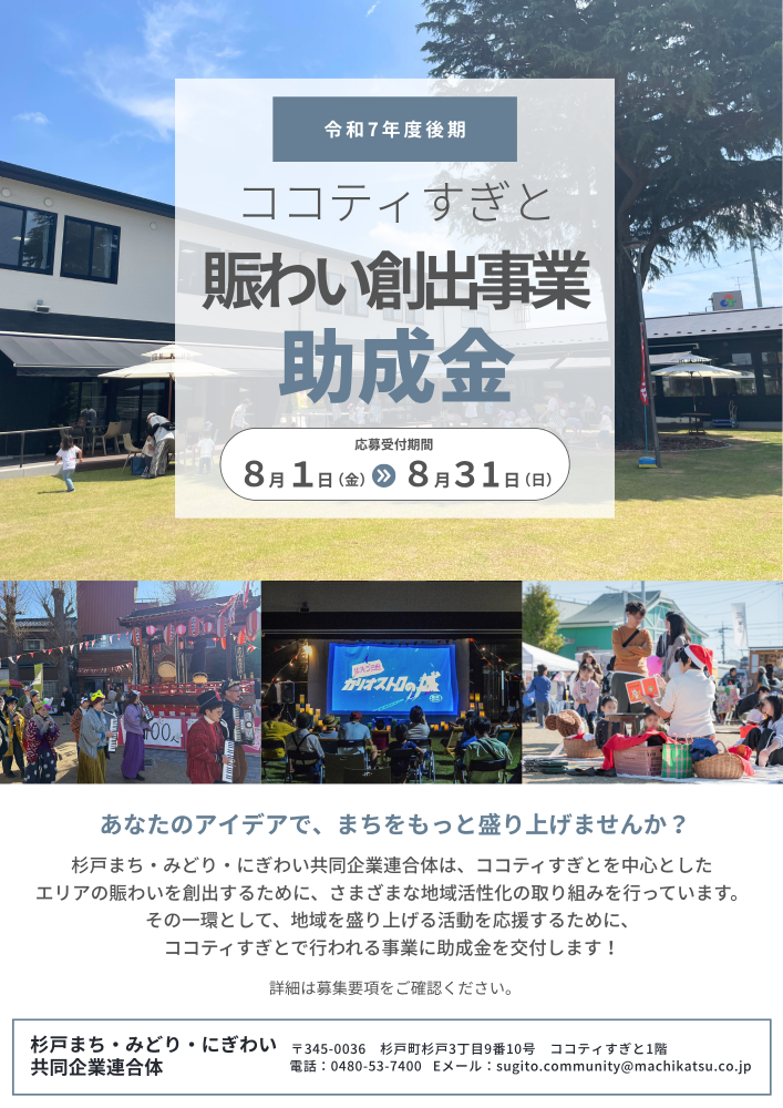 【令和7年度後期】ココティすぎと賑わい創出事業助成金 |