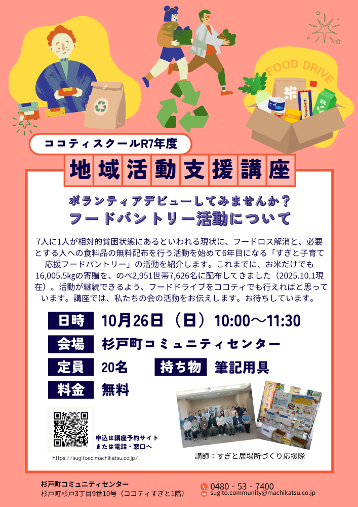 📢【受講者募集中!】フードパントリー活動について(ボランティア講座) |