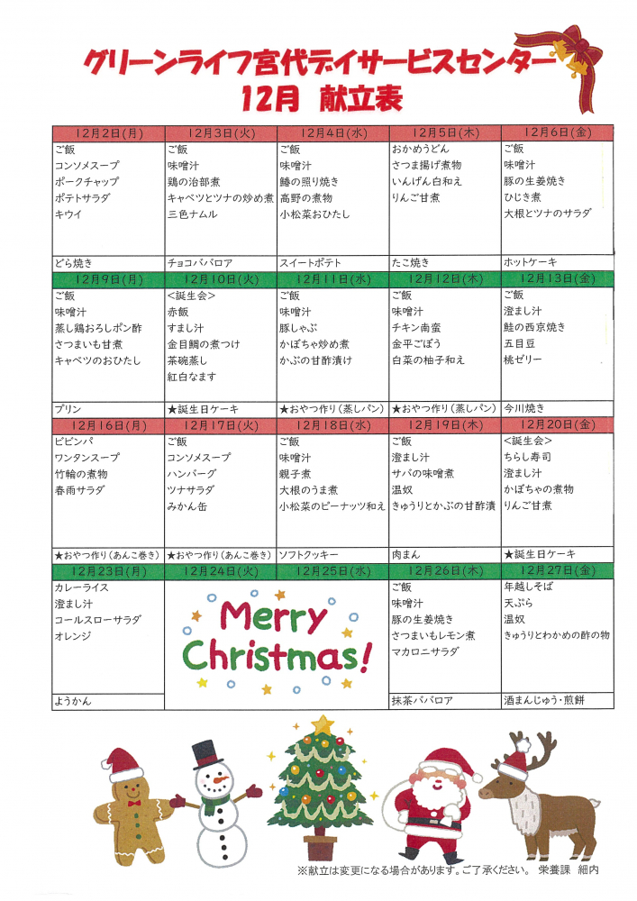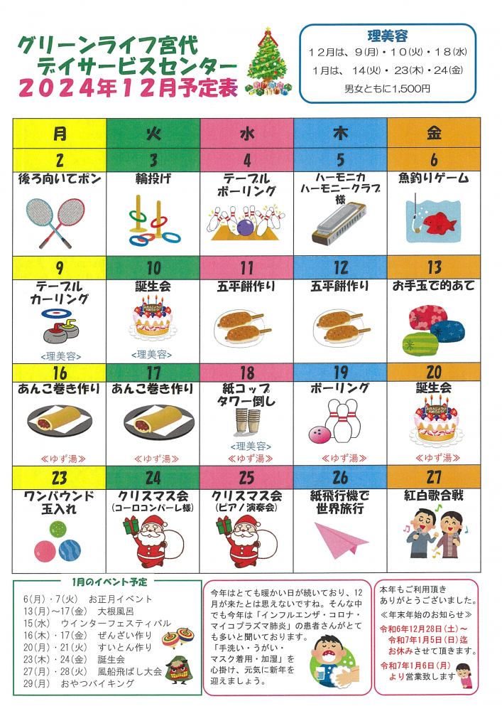 グリーンライフ宮代デイサービスセンターの12月の予定が出ました!
