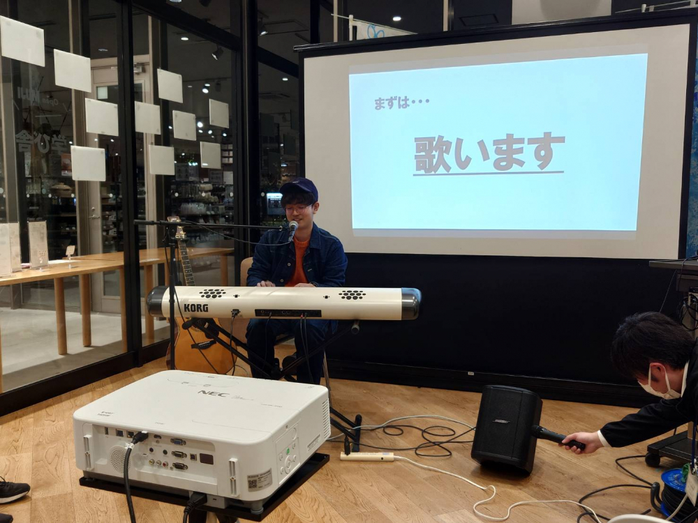 しっとりとした曲調と、中村さんのよく伸びる歌声が無印良品に響き、店内の雰囲気ともとてもよく合っていました。