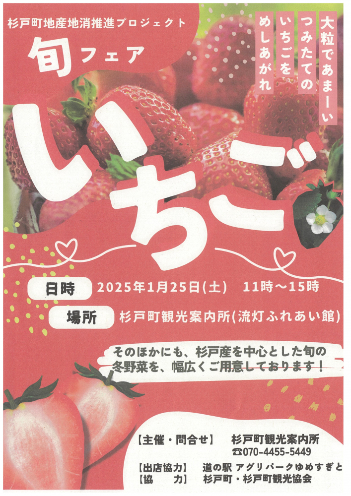 大粒であま〜いつみたてのいちごと、杉戸産を中心とした旬の冬野菜をご用意しております🍓