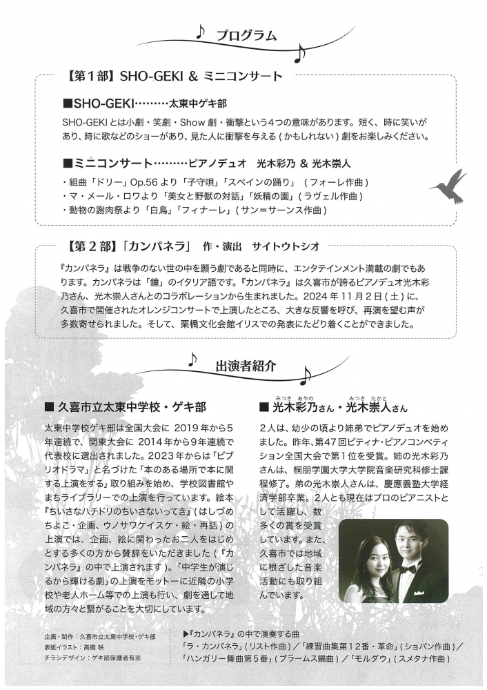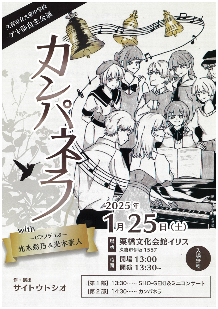 【1月25日(土)栗橋イリス13:00開場 入場無料】 SHO-GEKI&ミニコンサート・「カンパネラ」