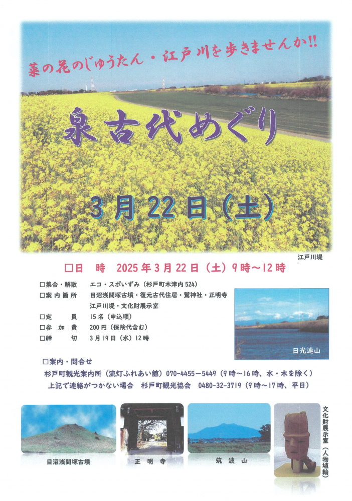 ●案内箇所:目沼浅間塚古墳、復元古代住居、鷲神社、正明寺