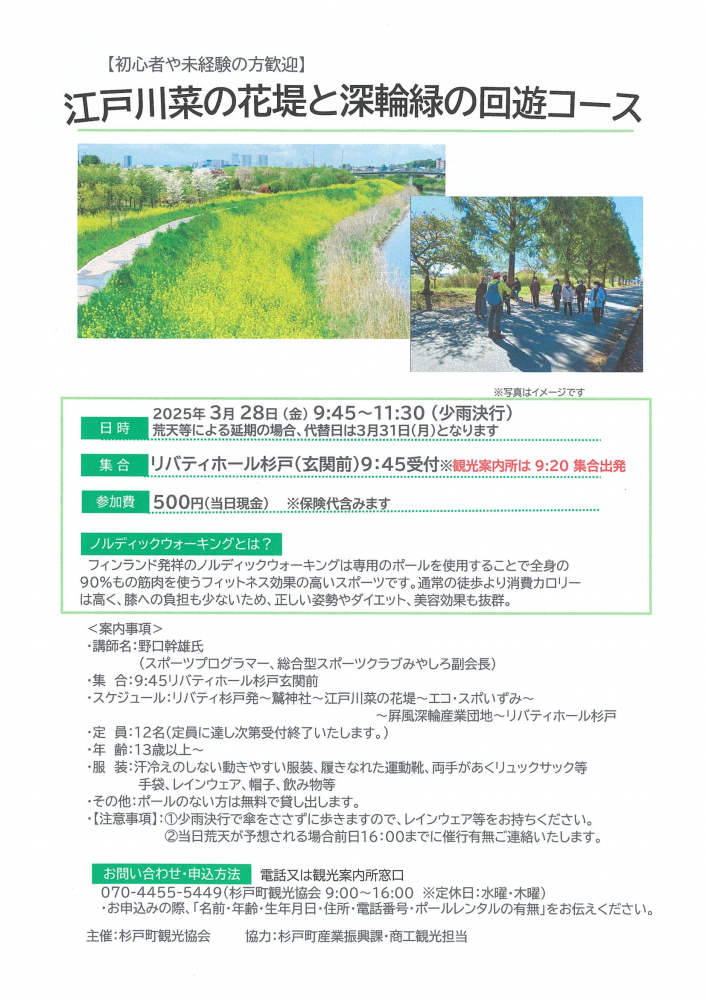 【2025年3月28日(金)開催】江戸川菜の花堤と深輪緑の回遊コース🍃