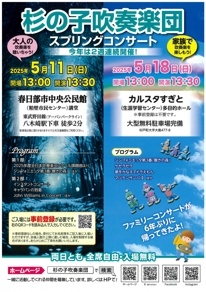 【 5月11日(日)・5月18日(日)開催】杉の子吹奏楽団🎵スプリングコンサート🎺