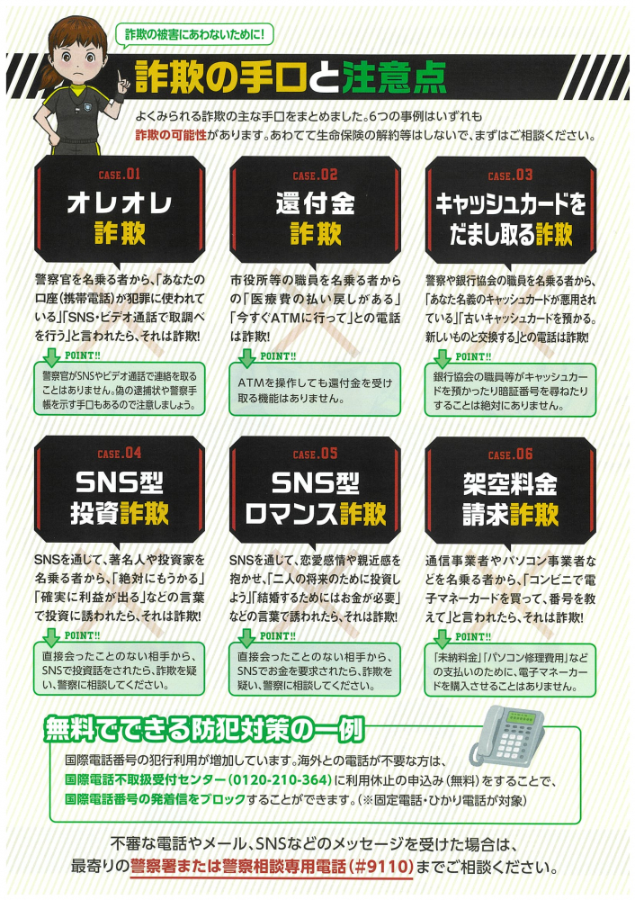 不審な電話やメール、SNSなどのメッセージを受けた場合は、最寄りの