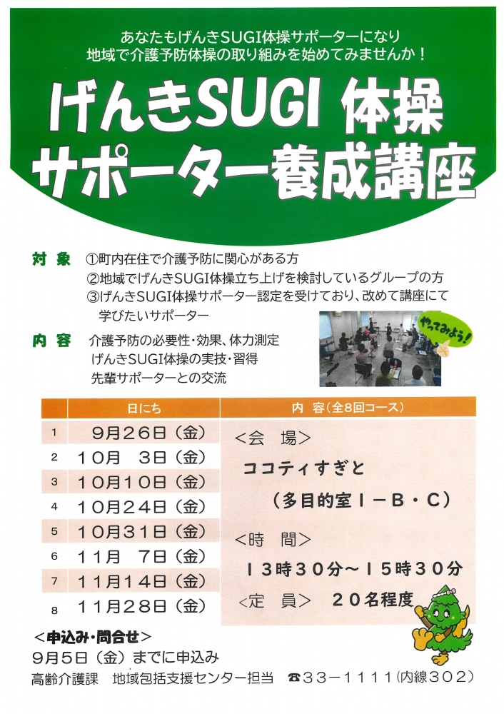 【9月26日(金)~11月28日(金)】げんきSUGI体操サポーター養成講座