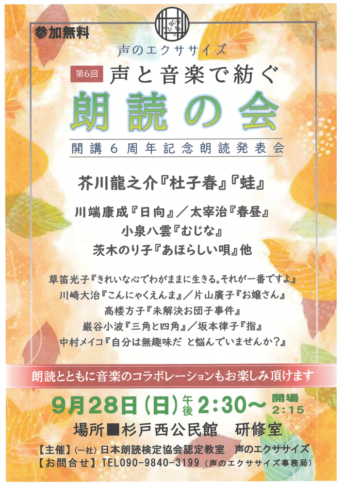 【9月28日(日)開催】第6回 朗読の会