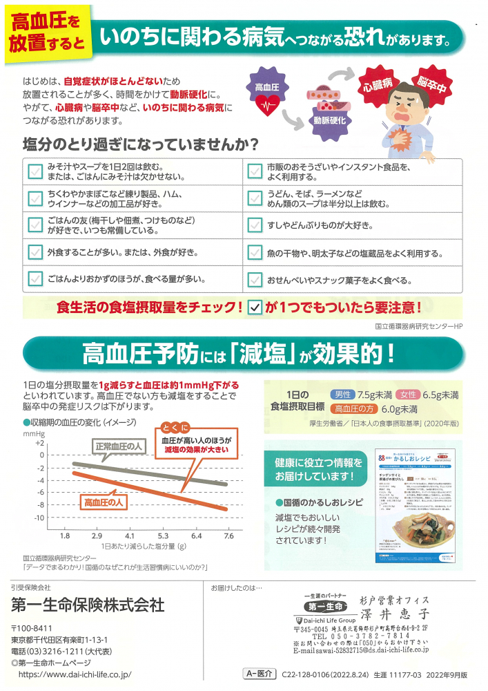 高血圧は働きざかりの20~50代において、女性より男性の方が多くなっており、
