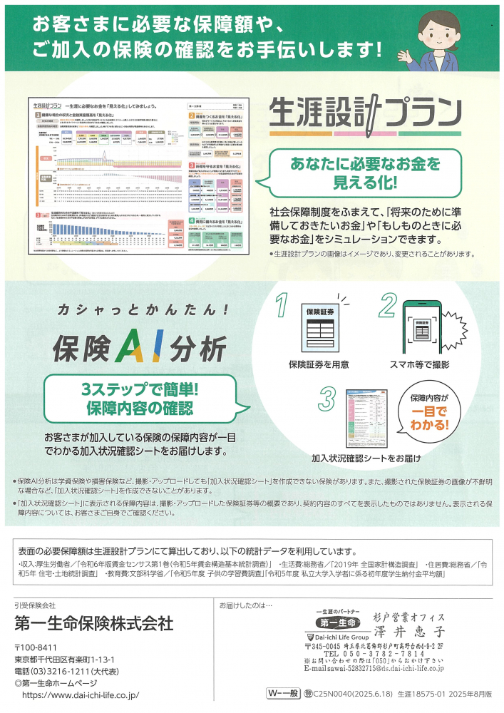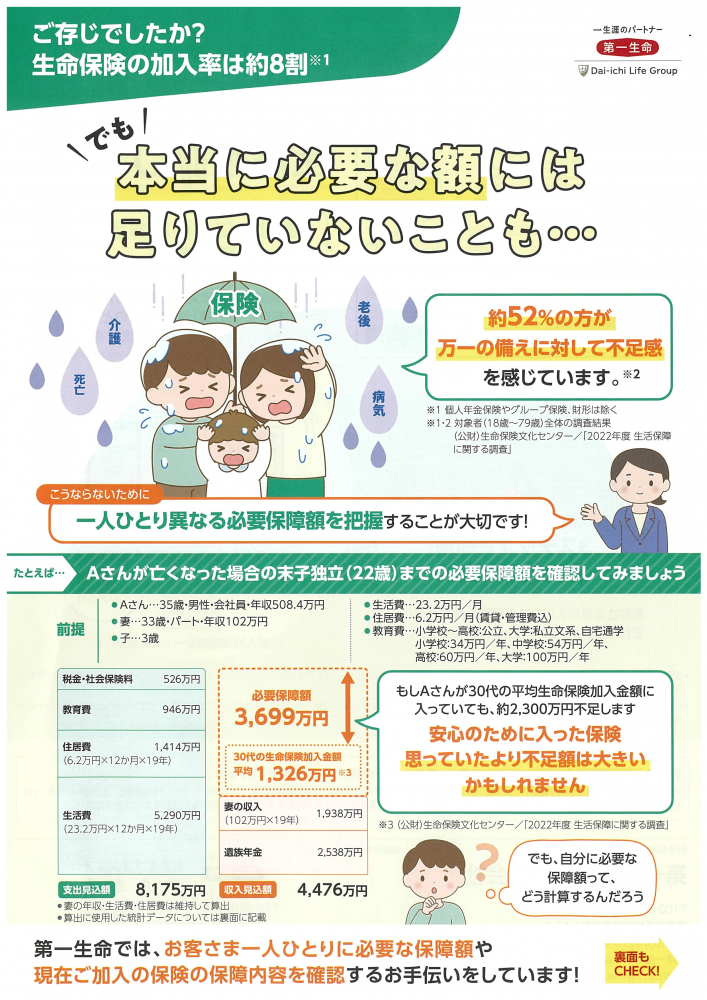 第一生命では、お客様一人ひとりに必要な保障額や現在ご加入の保険の