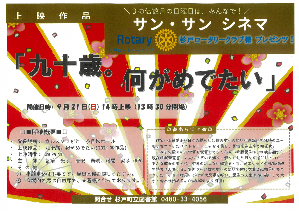 🎞️サン・シネマ🎞️ 杉戸ロータリークラブ様 プレゼンツ!