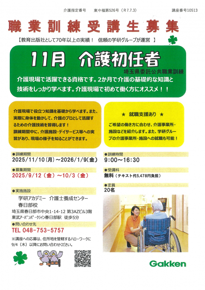 11月 介護初任者 埼玉県委託公共職業訓練