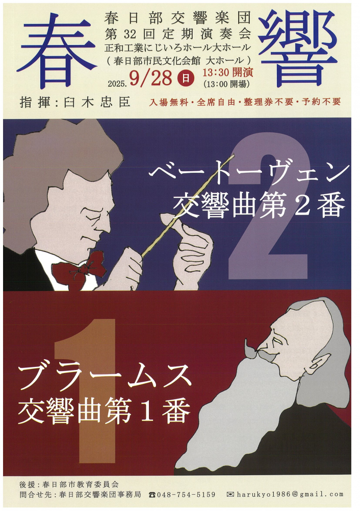 問合せ先:春日部交響楽団事務局 ☎048-754-5159