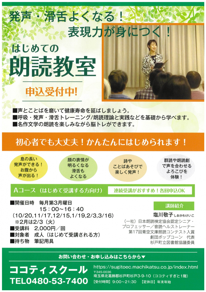 ■呼吸・発声・滑舌トレーニング・朗読理論と実践などを