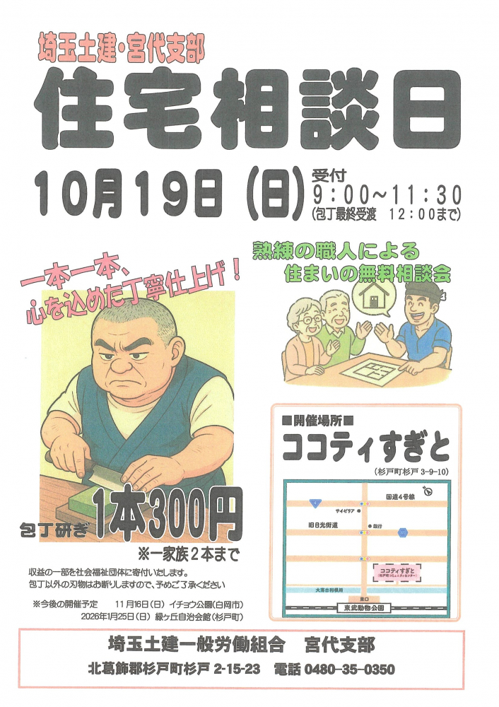10/19(日)【埼玉土建・宮代支部 住宅相談日】