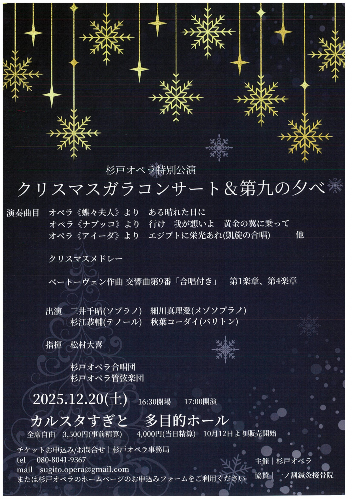 【杉戸オペラ特別公演 12月20日(土)】クリスマスガラコンサート&第九の夕べ