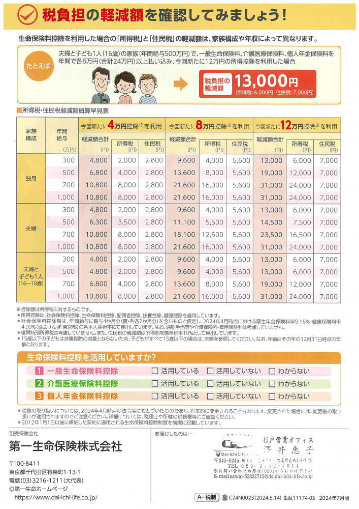 生命保険控除を上手に使うと税金の負担が軽くなる‼️