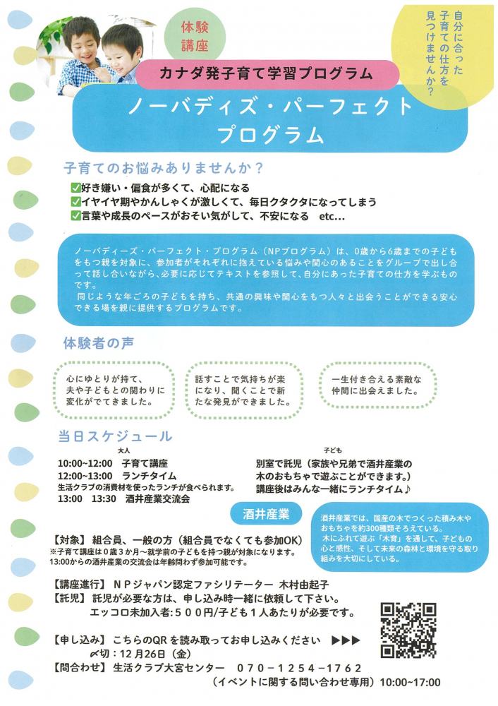 問合せ:生協クラブ大宮センター 070-1254-1762