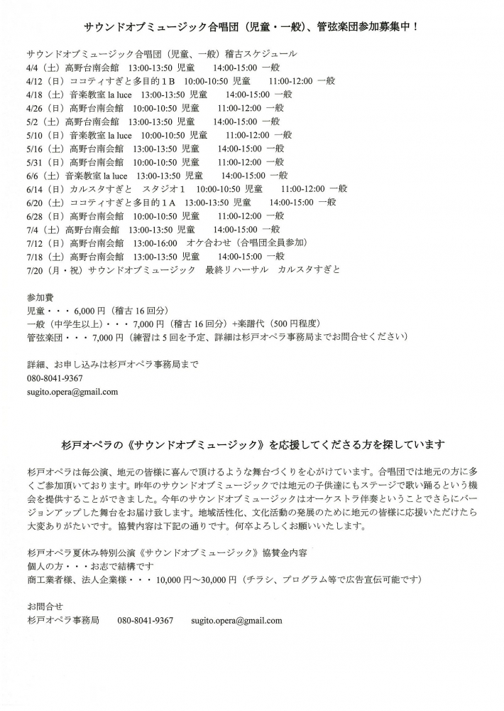 📢【出演者募集!!】杉戸オペラ夏休み特別公演 サウンドオブミュージック